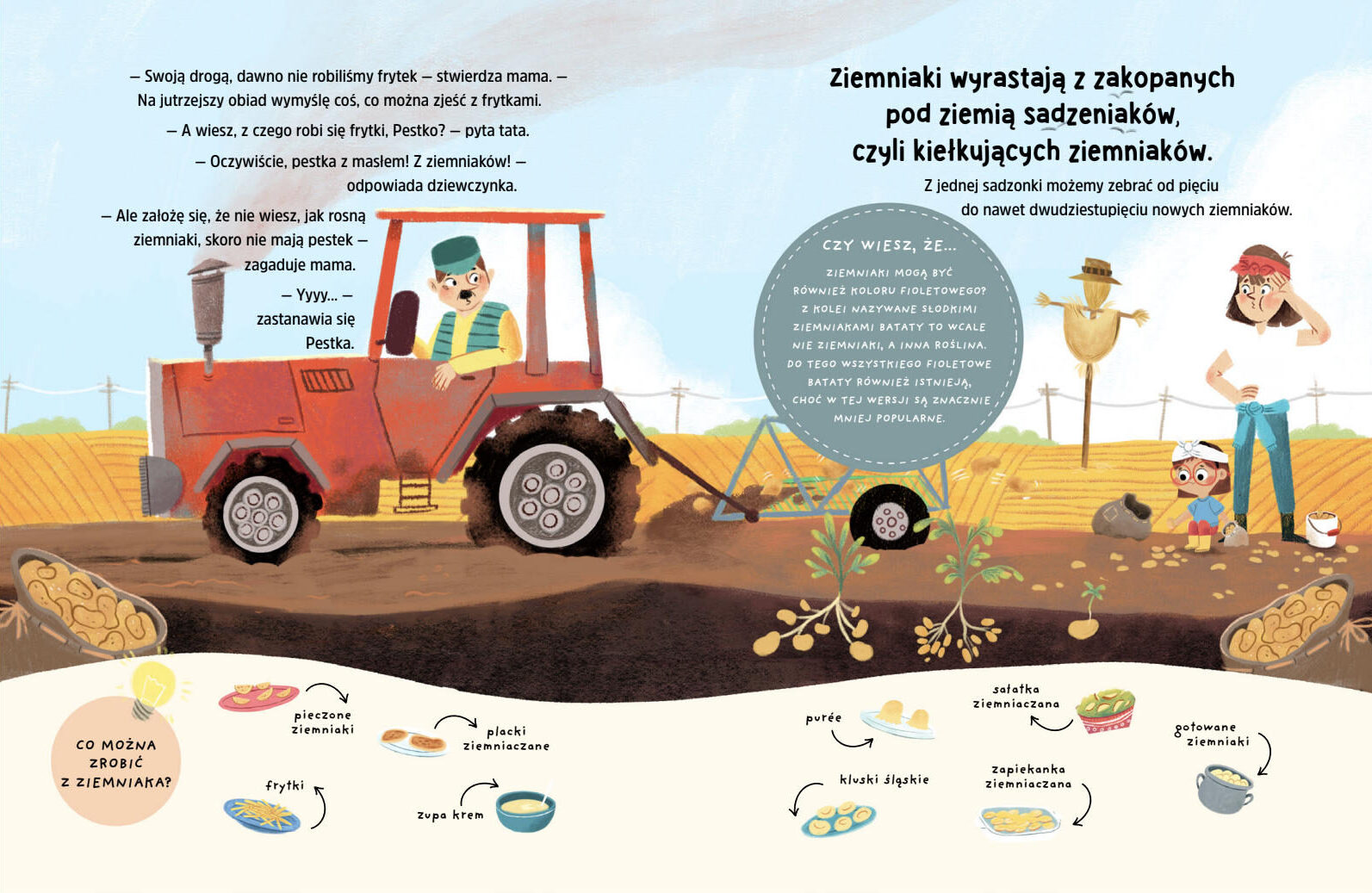 Ta książeczka to idealna okazja do tego, by porozmawiać z dzieckiem o jedzeniu, o tym jak różną postać mogą mieć te same produkty spożywcze i jak powstają, zanim trafią na talerz.