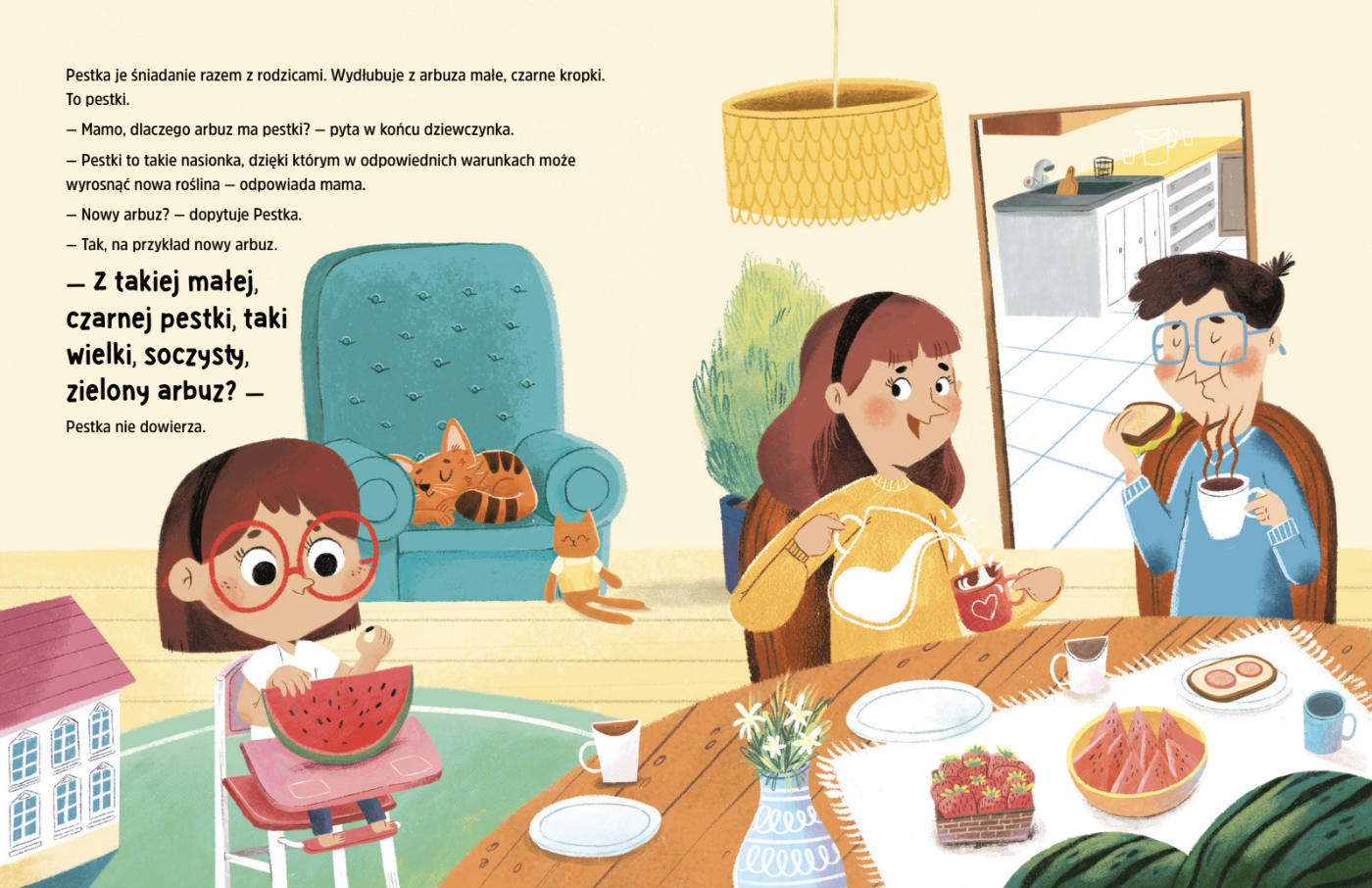 Skąd się bierze jedzenie? Czy wszystkie owoce mają pestki? Jak rośnie arbuz, a jak brokuł? Jak powstaje zupa albo skąd się biorą jajka? I co z tym wszystkim ma wspólnego pestka?